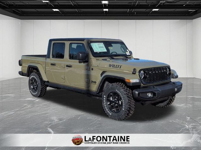 Experience the thrill of the open road and the freedom of the great outdoors with the 2026 Jeep Gladiator Willys. Visit our showroom today and let us demonstrate how this exceptional vehicle can transform your driving experience. Price includes: $1000 - 2026 National Retail Bonus Cash . Exp. 03/31/2026 $750 - 2026 Great Lakes BC Bonus Cash . Exp. 03/31/2026