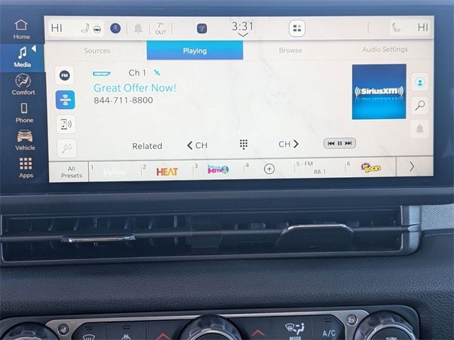 - Radio w/Seek-Scan, Clock, Speed Compensated Volume Control, Aux Audio Input Jack, Steering Wheel Controls, Voice Activation, Radio Data System and Uconnect External Memory Control