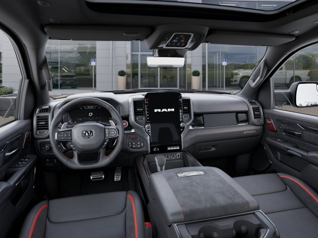 2026 Ram 1500 RHO Class IV Receiver-Hitch, Handsfree Phone and Audio, Remote Start System, Adaptive Cruise Control with Stop and Go, 12-Way/1-Way Trailer Connector, 14.4 Touchscreen Display, 4G LTE Wi-Fi Hot Spot, Adaptive suspension, Adjustable pedals, Apple CarPlay/Android Auto, Auto High-beam Headlights, Auto Power-Folding Mirrors, Auto-dimming Rear-View mirror, Automatic temperature control, Brake assist, Connected Travel and Traffic Services, Driver Power Seat Back Massage, Driver Seat Memory, Drowsy Driver Detection, Dual front impact airbags, Dual front side impact airbags, Dual Wireless Charging Pad, Dual-Pane Panoramic Sunroof, Evasive Steer Assist, Exterior Parking Camera Rear, Flareside Box, Front dual zone A/C, Front fog lights, Front Passenger Interactive Display, Front Passenger Power Seat Back Massage, Full Length Premium Upgraded Floor Console, Fully automatic headlights, Garage door transmitter, GPS Navigation, Hands-Free Active Driving Assist System, Harman/Kardon 19 Speaker Premium Sound, Heads-Up Display, Heated front seats, Heated Second Row Seats, Heated steering wheel, Illuminated entry, Integrated Voice Command with Bluetooth®, Intersection Collision Assist System, Leather Trimmed Bucket Seats, Leather/Carbon Flat-Bottom Steering Wheel, Low tire pressure warning, MOPAR Off-Road Style Running Boards, MyFlexCare Service Plan, Occupant sensing airbag, Overhead airbag, Power Adjustable Pedals with Memory, Power driver seat, Power Tailgate, Radio/Driver Seat/Mirrors/Pedals Memory, Rain Sensitive Windshield Wipers, Real Carbon Fiber Interior Accents, Rear window defroster, Red Interior Accents, Remote keyless entry, RHO Level 1 Equipment Group, SiriusXM Radio Service, Smartphone as a Key Capable, Sport steering wheel, Steering wheel mounted audio controls, Surround View Camera System, Telescoping steering wheel, Tilt steering wheel, Traffic Sign Recognition, Tri-Fold Tonneau Cover, Variably intermittent wipers, Ventilated Front Seats, Ventilated Rear Seats, Wheels: 18 x 9 Black Paint/Polish Aluminum. Welcome to LaFontaine Chrysler Dodge Jeep Ram of Walled Lake. You are viewing 1 of over 2000 New Chrysler Dodge Jeep Ram vehicles available in our massive inventory, ready for immediate Delivery!! New Vehicle Inventory! For immediate assistance call (248) 313-5409 ! Located at 1111 S Commerce Rd, Walled Lake, MI, 48390 Come and experience The Family Deal!