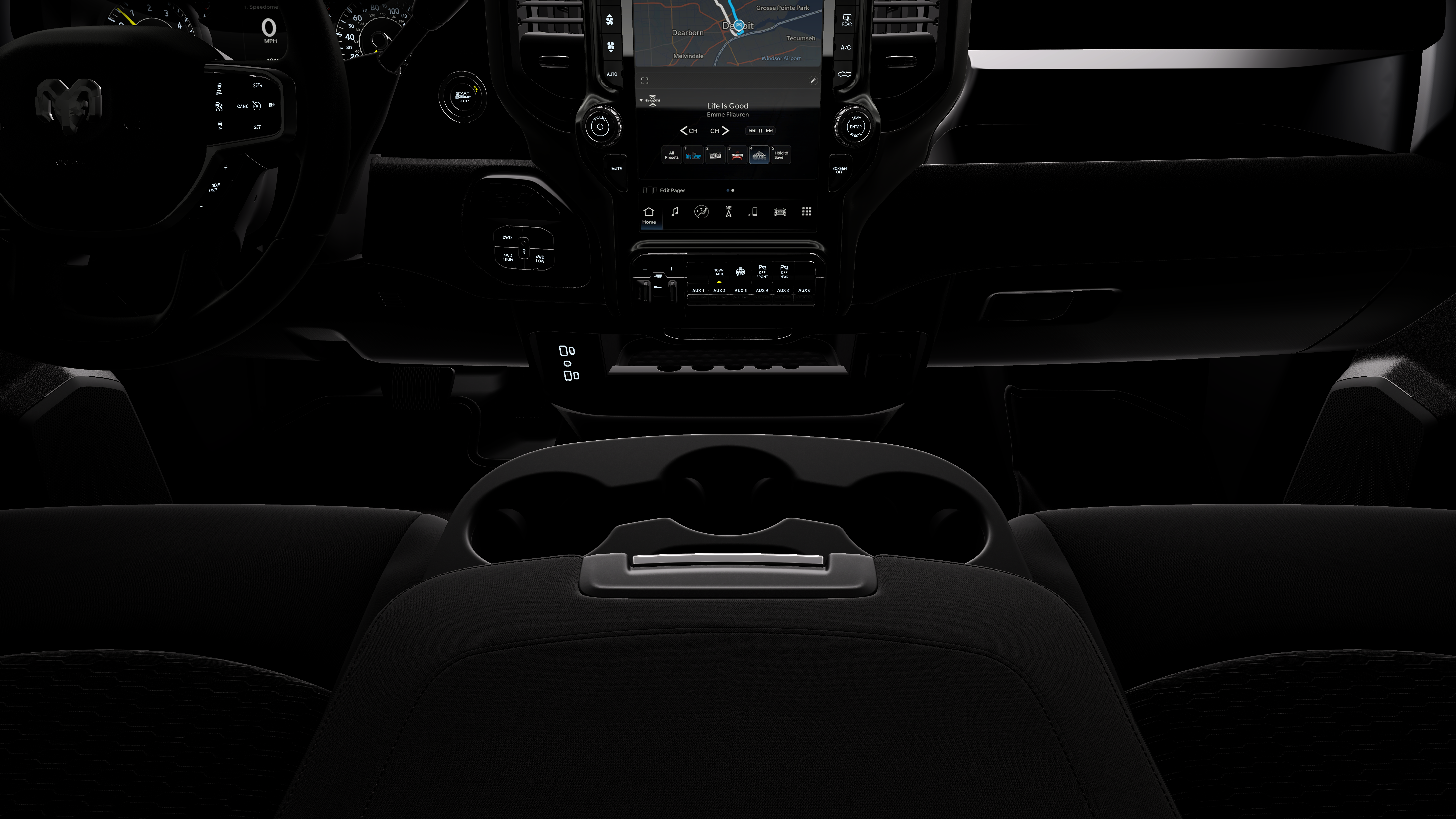 - Radio w/Seek-Scan, Clock, Speed Compensated Volume Control, Aux Audio Input Jack, Voice Activation, Radio Data System and Uconnect External Memory Control
