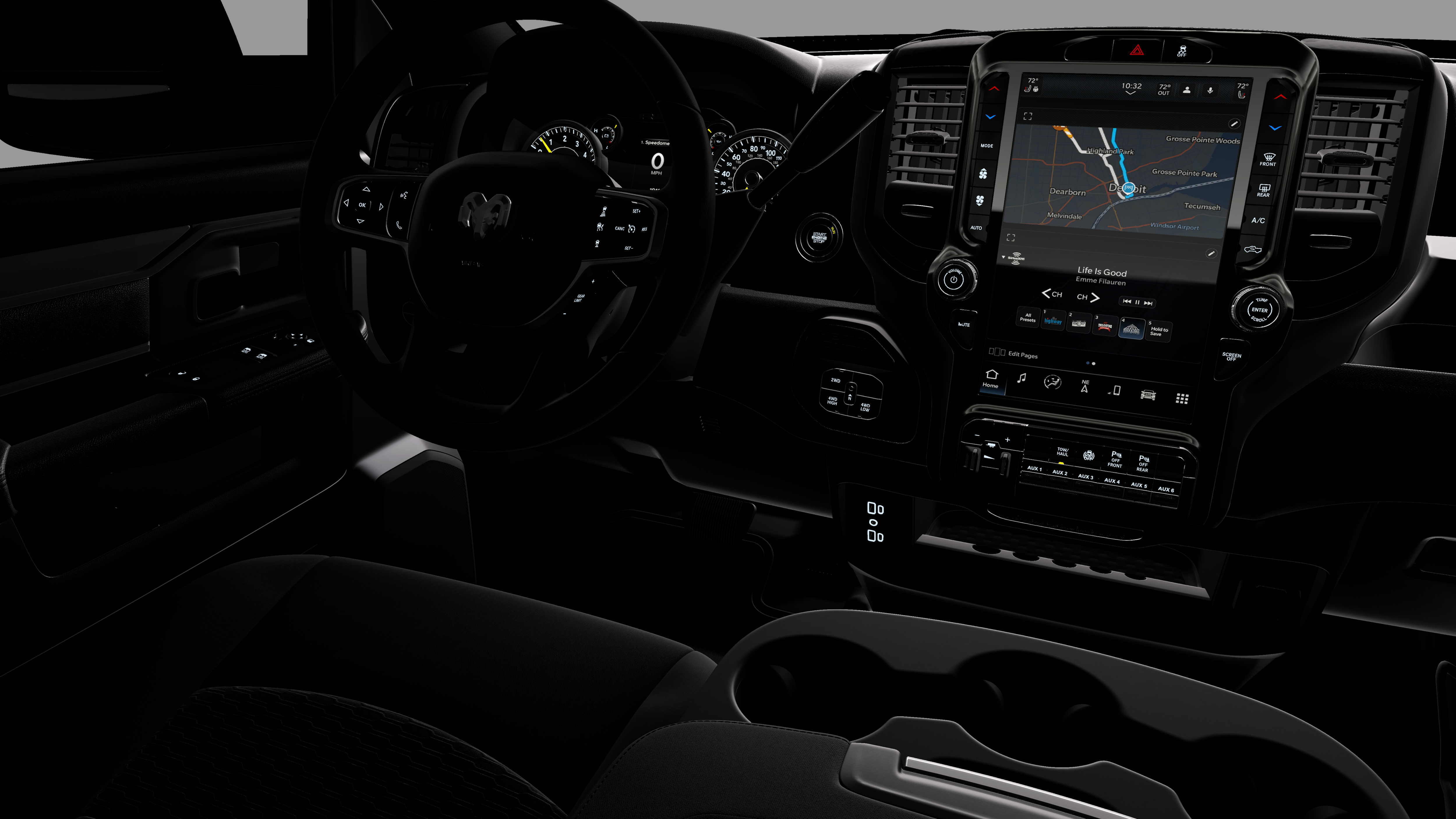 - Radio w/Seek-Scan, Clock, Speed Compensated Volume Control, Aux Audio Input Jack, Voice Activation, Radio Data System and Uconnect External Memory Control