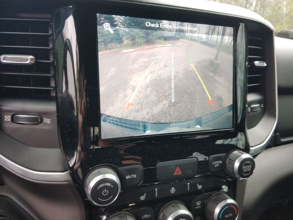 Handsfree Phone and Audio, Ready–Alert Braking, Rain Brake Support, 1500 Big Horn/Lone Star, 4D Crew Cab, 3.6L V6 24V VVT, 8-Speed Automatic, 4WD, Diamond Black Crystal Pearlcoat, Black Cloth, 115V Auxiliary Power Outlet, 115V Auxiliary Rear Power Outlet, 8.4 Touchscreen Display, Air Conditioning ATC w/Dual Zone Control, Apple CarPlay, Auto-Dimming Exterior Driver Mirror, Auto-Dimming Rear-View Mirror, Big Horn Level 2 Equipment Group, Brake assist, Class IV Receiver Hitch, Dampened Tailgate, Deluxe Cloth Bucket Seats, Dual front impact airbags, Dual front side impact airbags, Dual-Pane Panoramic Sunroof, Exterior Mirrors w/Memory, Front fog lights, Fully automatic headlights, Google Android Auto, GPS Navigation, Heated Front Seats, Heated Steering Wheel, Illuminated entry, Low tire pressure warning, Occupant sensing airbag, Overhead airbag, ParkSense Front/Rear Park Assist w/Stop, ParkView Rear Back-Up Camera, Power 8-Way Driver Seat, Power Adjustable Pedals, Power Heated Fold Away Mirrors, Power-Folding Mirrors, Rear Power Sliding Window, Rear Window Defroster, Remote keyless entry, Remote Start System, Security Alarm, Single Disc Remote CD Player, SiriusXM Satellite Radio, Sport Appearance Package, Steering Wheel Mounted Audio Controls, Telescoping steering wheel, Tilt steering wheel, Universal Garage Door Opener, Variably intermittent wipers.