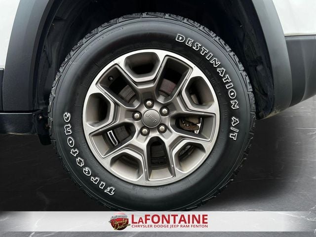 LaFontaine CDJR of Fenton is proud to offer this beautiful-looking 2020 Jeep Cherokee an absolutely great-looking SUV with the following Features: Cold Weather Group (Engine Block Heater, Heated Front Seats, Heated Steering Wheel, Leather Wrapped Steering Wheel, and Windshield Wiper De-Icer), Quick Order Package 27E Trailhawk, 3.517 Axle Ratio, 4-Wheel Disc Brakes, 6 Speakers, 8.4 Touchscreen Display, ABS brakes, Air Conditioning, Alloy wheels, AM/FM radio: SiriusXM, Anti-whiplash front head restraints, Apple CarPlay, Apple CarPlay/Android Auto, Automatic temperature control, AutoStick Automatic Transmission, Auxiliary Transmission Oil Cooler, Brake assist, Cloth/Premium Vinyl Bucket Seats, Compass, Delay-off headlights, Driver door bin, Driver vanity mirror, Dual Bright Exhaust Tips, Dual front impact airbags, Dual front side impact airbags, Electronic Stability Control, Engine Oil Cooler, Exterior Mirrors Courtesy Lamps, Exterior Mirrors w/Supplemental Signals, Four wheel independent suspension, Front anti-roll bar, Front Bucket Seats, Front Center Armrest, Front dual zone A/C, Front fog lights, Front reading lights, Fully automatic headlights, Google Android Auto, GPS Antenna Input, Heated door mirrors, Hill Descent Control, Illuminated entry, Integrated Voice Command w/Bluetooth®, Knee airbag, Leather Shift Knob, Low tire pressure warning, Occupant sensing airbag, Off Road Suspension, Outside temperature display, Overhead airbag, Overhead console, Panic alarm, ParkView Rear Back-Up Camera, Passenger door bin, Passenger vanity mirror, Power door mirrors, Power driver seat, Power steering, Power windows, Radio data system, Radio: Uconnect 4 w/8.4 Display, Rear anti-roll bar, Rear reading lights, Rear seat center armrest, Rear side impact airbag, Rear window defroster, Rear window wiper, Remote keyless entry, Roof rack: rails only, SiriusXM Satellite Radio, Speed control, Speed-sensing steering, Split folding rear seat, Spoiler, Steering wheel mounted audio controls, Stop-Start Multiple VSM System, Tachometer, Telescoping steering wheel, Tilt steering wheel, Traction control, Trip computer, Turn signal indicator mirrors, USB Host Flip, Variably intermittent wipers, Voltmeter, and Wheels: 17 x 7.5 Painted Diamond Cut Aluminum.