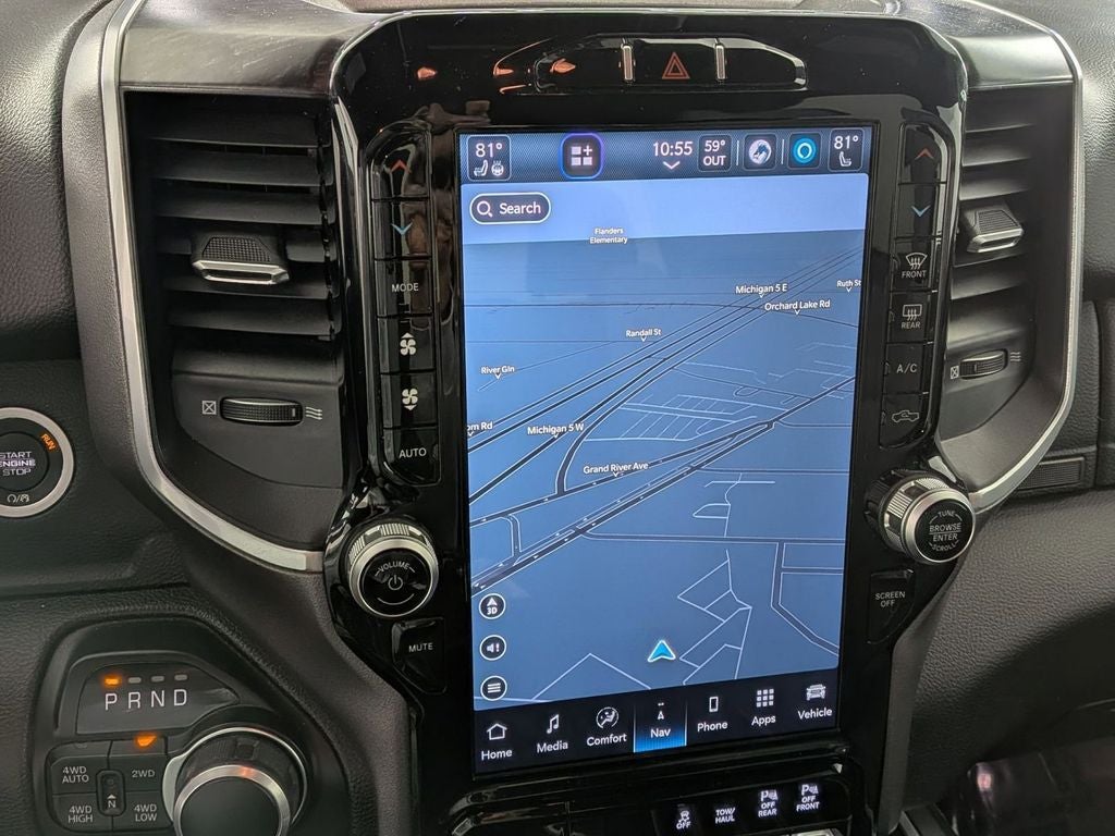 Handsfree Phone and Audio, Ready–Alert Braking, Rain–Brake Support, 1500 Big Horn/Lone Star, 4D Crew Cab, 3.6L V6 24V VVT, 8-Speed Automatic, 4WD, Diamond Black Crystal Pearlcoat, Black Cloth, 115V Auxiliary Power Outlet, 12 Touchscreen Display, 3.55 Rear Axle Ratio, 4G LTE Wi-Fi Hot Spot, 9 Amplified Speakers w/Subwoofer, Air Conditioning ATC w/Dual Zone Control, Anti-Spin Differential Rear Axle, Apple CarPlay, Auto-Dimming Rear-View Mirror, Big Horn Level B Equipment Group, Bluetooth® Handsfree Phone & Audio, Brake assist, Class IV Receiver Hitch, Connected Travel & Traffic Services, Convex Wide-Angle Exterior Mirror Insert, Delay-off headlights, Deluxe Cloth Bucket Seats, Dual front impact airbags, Dual front side impact airbags, Emergency communication system: SiriusXM Guardian, Front Fog Lamps, Fully automatic headlights, Google Android Auto, GPS Navigation, Heated Front Seats, Heated Steering Wheel, Illuminated entry, Integrated Voice Command w/Bluetooth®, Low tire pressure warning, Night Edition, Occupant sensing airbag, Overhead airbag, ParkSense Front/Rear Park Assist w/Stop, ParkView Rear Back-Up Camera, Power 2-Way Driver Lumbar Adjust, Power 8-Way Driver Seat, Power Adjustable Pedals, Power-Folding Mirrors, Rear Power Sliding Window, Rear Window Defroster, Remote keyless entry, Remote Start System, Security Alarm, SiriusXM Radio Service, SiriusXM Satellite Radio, Steering wheel mounted audio controls, Telescoping steering wheel, Tilt steering wheel, Universal Garage Door Opener, Variably intermittent wipers, Wheels: 20 x 9.0 Premium Paint/Polished.