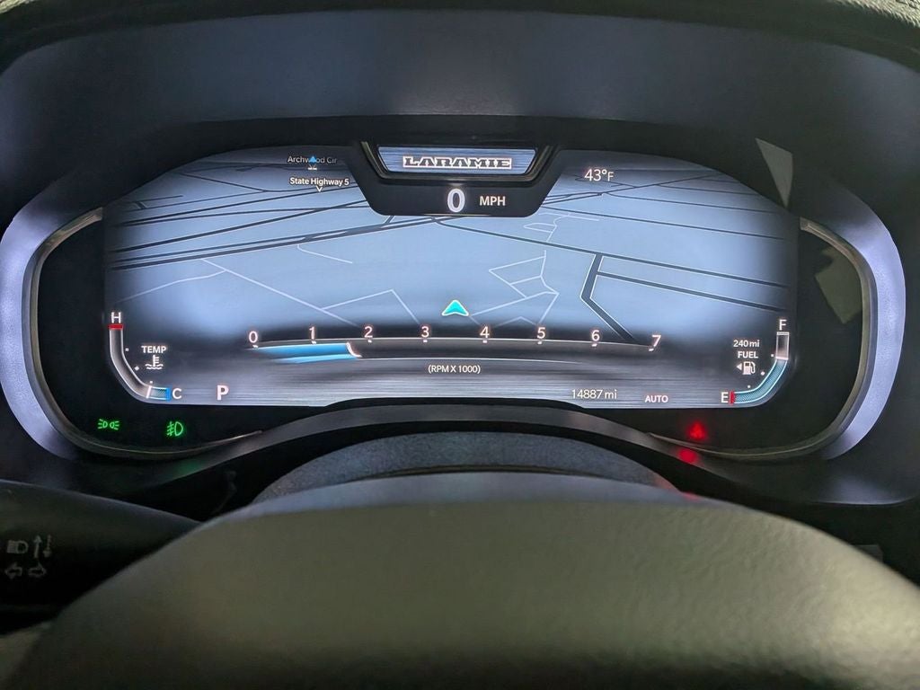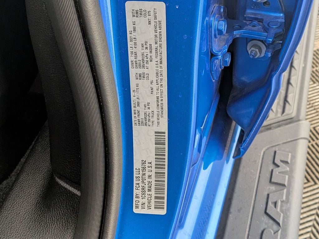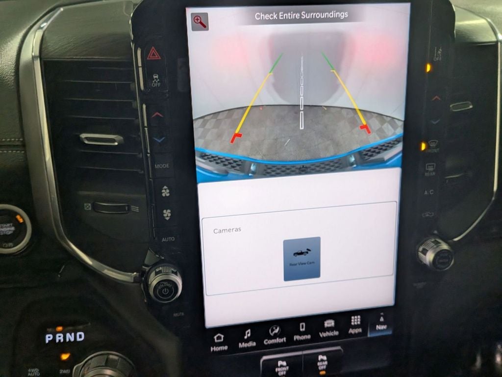 Class IV Receiver-Hitch, Handsfree Phone and Audio, Parksense Front and Rear Park Assist, Remote Start System, Active Lane–Management System, Full–Speed Forward–Collision Warning Plus, Blind–Spot and Cross–Path Detection, Advanced Brake–Assist, Adaptive Cruise Control with Stop and Go, Pedestrian Emergency Braking, Power Tailgate, Front Passenger Interactive Display, 1500 Laramie, 4D Crew Cab, 3.0L I6, 8-Speed Automatic, 4WD, Hydro Blue Pearlcoat, Black Leather, 14.4 Touchscreen Display, 3.55 Rear Axle Ratio, 4G LTE Wi-Fi Hot Spot, Active Noise Control System, Adjustable pedals, Anti-Spin Differential Rear Axle, Apple CarPlay/Android Auto, Auto High-beam Headlights, Auto Power-Folding Mirrors, Auto-Dimming Exterior Driver Mirror, Auto-dimming Rear-View mirror, Automatic temperature control, Brake assist, Cluster 12 TFT Color Display, Connected Travel and Traffic Services, Convex Wide-Angle Exterior Mirror Insert, Dual Exhaust with Black Tips, Dual front impact airbags, Dual front side impact airbags, Dual-Pane Panoramic Sunroof, Exterior Mirrors Approach Lamps, Exterior Mirrors Courtesy Lamps, Exterior Mirrors with Memory, Front dual zone A/C, Front fog lights, Front Passenger Interactive Display, Fully automatic headlights, Garage door transmitter, GPS Navigation, Harman/Kardon 19 Speaker Premium Sound, Heated front seats, Heated rear seats, Heated steering wheel, Illuminated entry, Integrated Voice Command with Bluetooth®, Laramie Level 2 Equipment Group, Leather Trimmed Bucket Seats, Low tire pressure warning, Memory seat, Mopar Black Tubular Side Steps, MOPAR Front and Rear Rubber Floor Mats, Night Edition, Occupant sensing airbag, Overhead airbag, ParkView Rear Back-Up Camera, Pedal memory, Power driver seat, Power passenger seat, Power Tailgate, Proximity Approach/Departure Lamps, Rain Sensitive Windshield Wipers, Remote keyless entry, SiriusXM Radio Service, SiriusXM with 360L, Speed control, Sport Performance Hood, Steering wheel mounted audio controls, Telescoping steering wheel, Tilt steering wheel, Ventilated front seats, Wheels: 22 x 9 Forged Aluminum.